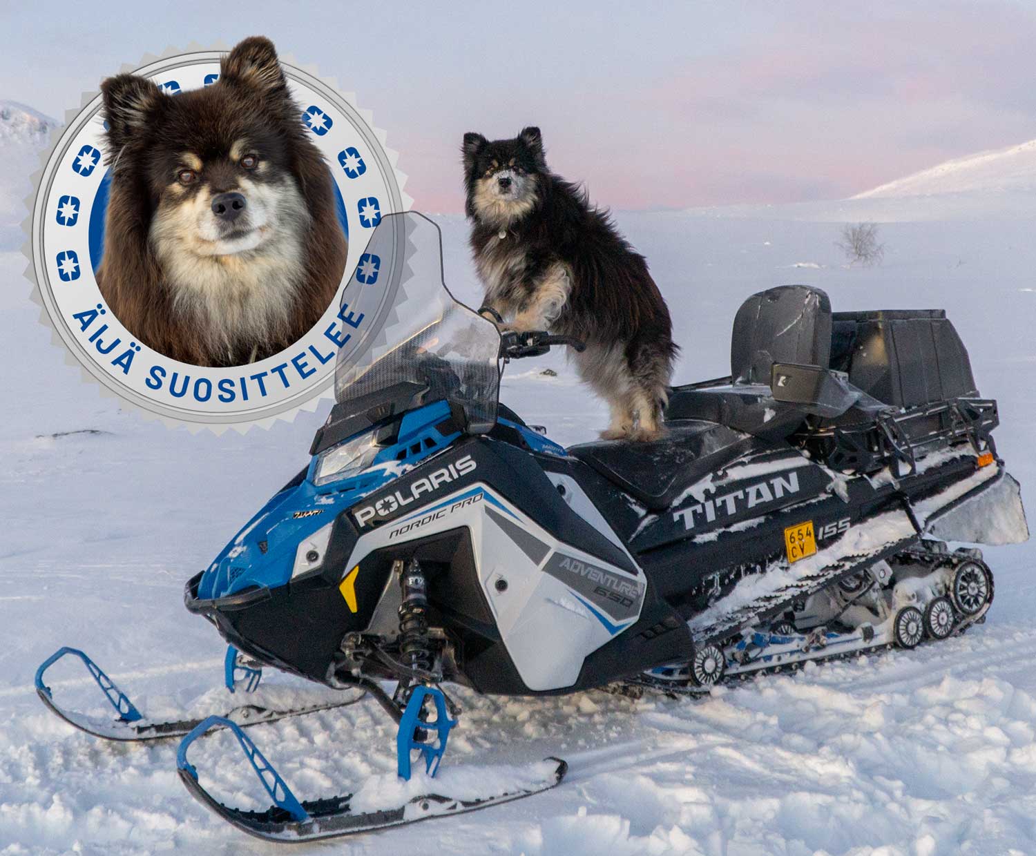 Aki Huhtanen Äijä-koiransa kanssa käyttävät Polaris 650 Titan Nordic Pro -moottorikelkkaa kalastus ja -eräilyretkillään. Ota herrojen Instagram-tilit seurantaan niin näet minne kaikkialle he päätyvät kelkkaillessaan: @graylingland @aijakoira